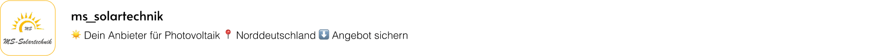Britta Hinz Superschnelle, perfekte Ausführung. Sehr freundliches Team. Wir sind sehr froh, diese Firma gefunden zu haben. Termintreue, Verlässlichkeit und Erreichbarkeit sind spitzenmäßig. Innerhalb von 10 Tagen sind wir nun Besitzer einer Photovoltaik Anlage zu einem fairen Preis. Danke Marco Schnoor Gleich mal vorweg empfehle ich jedem,der sich eine Photovoltaik Anlage anschaffen möchte sich bei der Firma MS Solartechnik ein Angebot geben zu lassen. Ich habe beste Erfahrungen mit Herrn Kristian Rommel gemacht! Herr Rommel hat uns fachmännisch kompetent und ehrlich beraten! Alles wurde so verwirklicht wie wir uns das vorgestellt haben. Die Installation dauerte 2 Tage. Am zweiten Tag gegen Mittag lief die Anlage zur vollen Zufriedenheit. 11.4 Kwp 24 Paneele. Die Arbeiten wurde sehr zu unserer Zufriedenheit ausgeführt und alles wurde ordentlich und sauber hinterlassen!!! Vielen Dank an die Firma MS Solartechnik und besonders möchte ich Herrn Kristian Rommel der mit seiner sehr höflichen und kompetenten Art bei den Vorgesprächen und Beratung alles in die Wege geleitet und vermittelt hat. Ich kann die Firma und deren Mitarbeiter wärmstens empfehlen!!! PS: Auch das Preisleistungsverhältnis ist sehr gut! Arne Engel Dieses Unternehmen hat heute unsere PV-Ablage installiert und in Betrieb genommen und es hat alles gut funktioniert! Die Beratung durch Herrn Rommel war freundlich und kompetent, Anlieferung und die Montage der Platten zügig und sauber und die Installation und Inbetriebnahme des Wechselrichters, Speichers und Netzanschlusses wurde von zwei lustigen, kommunikativen, aber sehr kompetenten jungen Männern durchgeführt. Keinerlei Beanstandung, Preise transparent und deshalb 5 Sterne! Weiterempfehlenseert! Rudolf Böhlke Bereits vor meinem Einzug im März diesen Jahres, beauftragte ich die MS-Solartechnik GmbH mit der Montage einer PV Anlage auf meinem Objekt. Anfangs schätzte ich den persönlichen Kontakt der bis heute noch besteht. Respekt zolle ich der Planung um Umsetzung des Projekts. Bei mir wurde eine 16kwp große Anlage montiert. 16 Module liegen in Ost/West Ausrichtung auf dem Flachdach. 20 Module in südlicher Ausrichtung auf dem Satteldach. Dem Montageteam gelang es, alle Module innerhalb von 5 Stunden zu setzen. Tags darauf kam der Elektriker der in 2 Tagen alles verkabelte und anschloss, einschließlich einer Wallbox. Vom der Hardware (Eco Flow und den Aico Modulen) bin ich begeistert. Nicht selten komme ich an sonnigen Tagen an das Maximum der Leistung heran. Im 3 monatigen Betrieb konnte ich seit Ende März einen Ertrag von gut 900 Euro erzielen. Derzeit bin ich jenseits der 90% Strom-autonom, trotz des Bedarfs durch mein Hybridfahrzeug. Bei dieser Effektivität gehe ich davon aus, dass sich die Anlage in weniger als 10 Jahren amortisiert hat. Ich bedanke mich bei MS-Solartechnik und allen voran bei Marcel Schiffer für die tolle Planung und Umsetzung. Rene Kaschel Top Beratung durch Jonas Dönitz! Super professionell! Danke! Christian Brück Eigentlich wollten wir nie eine Solaranlage haben. Uns wurde aber von Arbeitskollegen die Firma MS Solartechnik empfohlen. Für die Beratung kam Herr Rommel und hat uns gleich begeistern können. Seit 2 Tagen ist die Anlage nun installiert und wir sind genau richtig beraten worden. Die Anlage passt genau zu unserem Bedarf. Wir haben uns für die Paneelen AIKO Neostar 2S entschieden und für die Ecoflow Anlage. Die Technik im Hauswirtschaftsraum nimmt auch nur wenig Platz weg. Die Montage auf dem Dach hat ca 6 Stunden gedauert und 1 Woche später kamen die Elektriker für den Anschluß. Alles ganz toll gelaufen. Ein regionaler Handwerksbetrieb den man nur weiterempfehlen kann. Philipp Goetzke Bin sehr zufrieden mit der Leistung der Truppe. Vom ersten Kontakt mit Herrn Rommel über die Dachmontage bis zu den Elektroarbeiten. Alle freundlich, fleißig und ordentlich. Telefonische Nachfragen im Büro wurden zügig beantwortet und das Ergebnis kann sich sehen lassen. Alles nach meinen Vorstellungen gelaufen. Kann das Unternehmen vorbehaltlos weiterempfehlen. Felix L. Ich war vom ersten Kontakt bis zum Abschlussgespräch rundum zufrienden mit dem Service der MS-Solartechnik GmbH. Selbst wenn es am Ende nicht dazu gekommen ist, dass wir den Auftrag vergeben haben möchte ich mit dieser Bewertung hervorheben, dass vor Allem der Projektleiter Herr Marvin Lebenhagen uns super beraten hat und zu jeder Zeit auf Rückfragen schnell und zielführen reagiert hat. Ich kann die Firma daher allen nur empfehlen, selbst wenn ich hiermit nicht die Installation einer PV-Anlage bewerten kann. Weiter so! Tobias Müller Vielen Dank an MS-Solartechnik GmbH für die tolle Ausführung und Umsetzung unseres Projekts (12 kwp PV-Anlage)! Klare Weiterempfehlung!Google Gesamtbewertung 5.0 von 5, basierend auf 73 Bewertungen